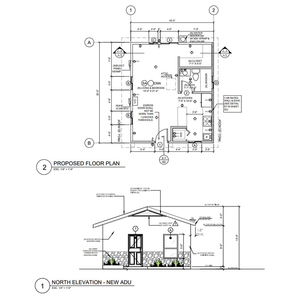 An ADU is an attached or detached residential dwelling unit that provides complete independent living facilities for one or more persons and is located on a lot with a proposed or existing primary residence. It shall include permanent provisions for living, sleeping, eating, cooking and sanitation on the same lot as the single family or multifamily dwelling is or will be situated.